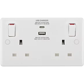 British General 800 Series 13A 2-Gang SP Switched Socket + 3A 2-Outlet Type A & C USB Charger White