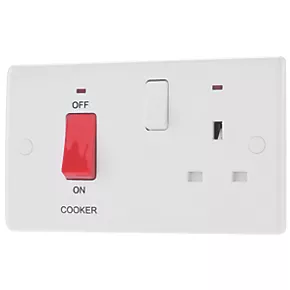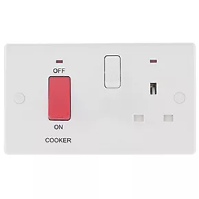 British General 800 Series 45A 2-Gang DP Cooker Switch & 13A DP Switched Socket White with LED