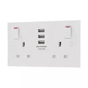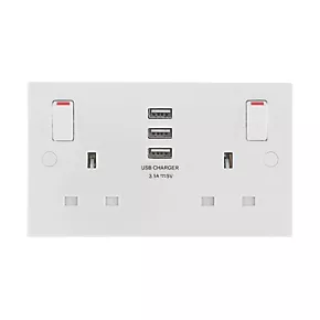 British General 900 Series 13A 2-Gang SP Switched Socket + 3.1A 3-Outlet Type A USB Charger White