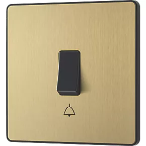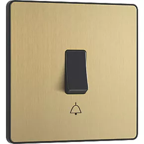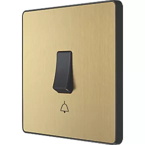 British General Evolve 10A 1-Gang 1-Way Bell Push Switch Satin Brass with Black Inserts
