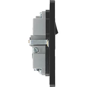 Single power socket with 2 USB charging ports. Offers ability to charge mobile devices without using extra sockets. Auto-detects USB device and adjusts charging pattern to suit, switching to standby mode when fully charged to prevent overload. Features low profile, screwless flat plate that clips on and off, making it ideal for modern interiors.