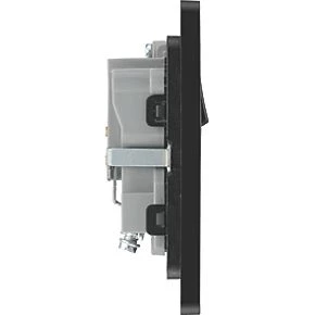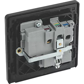 Single switched socket with colour-coded terminals and backed out captive screws for ease of installation. Fits 35mm back box, making it suitable for retro-fit replacement of existing sockets. Features low profile, screwless flat plate that clips on and off, ideal for modern interiors.