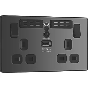 British General Evolve 13A 2-Gang SP Switched Double Socket With WiFi Extender + 2.1A 1-Outlet Type A USB Charger Black with Black Inserts