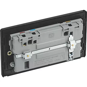 British General Nexus Metal 13A 2-Gang DP Switched Plug Socket Black Nickel with Black Inserts