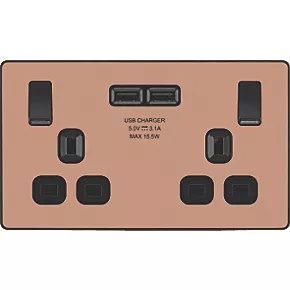 Be the first to review “British General Evolve 13A 2-Gang SP Switched Socket + 3.1A 2-Outlet Type A USB Charger Copper with Black Inserts” Cancel reply