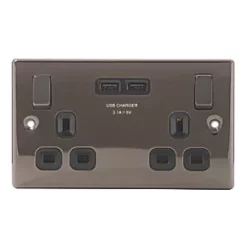 British General Nexus Metal 13A 2-Gang DP Switched Plug Socket Black Nickel with Black Inserts
