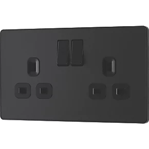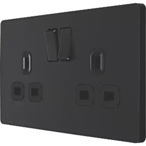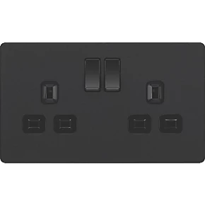 British General Evolve 13A 2-Gang SP Switched Socket Matt Black with Black Inserts