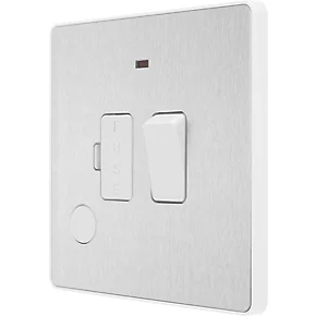 British General Evolve 13A Switched Fused Spur with LED Brushed Steel with White Inserts