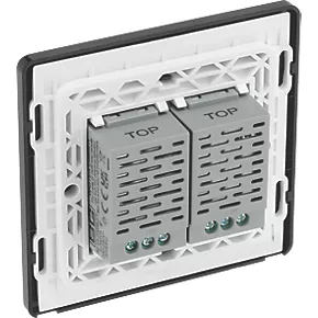 Evolve double master trailing edge touch dimmer switch that controls light levels and sets mood. Intelligent electronic circuit monitors the connected load and provides a soft-start with protection against thermal, current and voltage overload. Suitable for dimming LED, dimmable CFLs and traditional lighting. Soft-start brings the lights to a set level in around 1 second and extends lamp life. Silent operation means no noise when dimming, while support for low wattage lamps eliminates flicker. Low profile screwless flat plate that clips on and off, ideal for modern interiors.