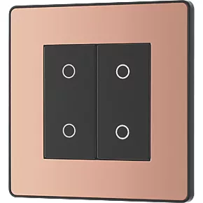 Be the first to review “British General Evolve 2-Gang 2-Way LED Double Secondary Touch Trailing Edge Dimmer Switch Copper with Black Inserts” Cancel reply