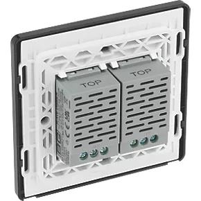 Evolve double secondary touch dimmer switch that controls light levels and sets mood. Must be in the same circuit as a master touch dimmer. Intelligent electronic circuit monitors the connected load and provides a soft-start with protection against thermal, current and voltage overload. Suitable for dimming LED, dimmable CFLs and traditional lighting. Soft-start brings the lights to a set level in around 1 second and extends the lamp life. Silent operation means no noise when dimming while support for low wattage lamps eliminates flicker. Low profile screwless flat plate that clips on and off, ideal for modern interiors.