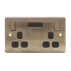 British General 900 Series 13A 2-Gang SP Switched Socket + 3.1A 2-Outlet Type A USB Charger White