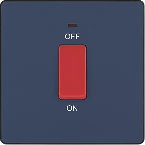 Be the first to review “British General Evolve 45A 1-Gang 2-Pole Cooker Switch Blue with LED with Black Inserts” Cancel reply
