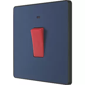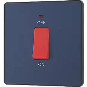 British General Evolve 45A 1-Gang 2-Pole Cooker Switch Blue with LED with Black Inserts