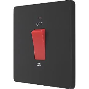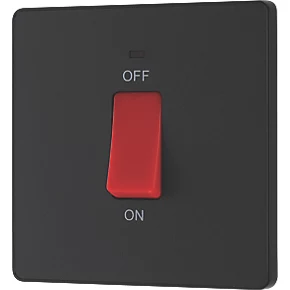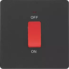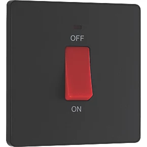 Double pole switch with low power, flush fit LED indicator, for use with cookers and ovens. Features low profile, screwless flat plate that clips on and off, making it ideal for modern interiors.