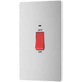 British General Evolve 45A 1-Gang 2-Pole Cooker Switch Brushed Steel with LED with White Inserts