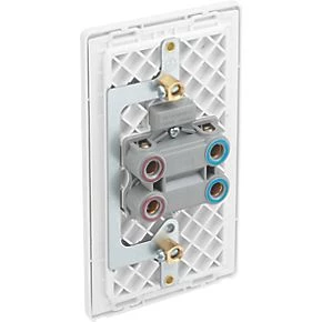Double pole switch with low power, flush fit LED indicator, for use with cookers and ovens. Features large mounting plate (146mm x 86mm) and low profile, screwless flat plate that clips on and off, making it ideal for modern interiors.