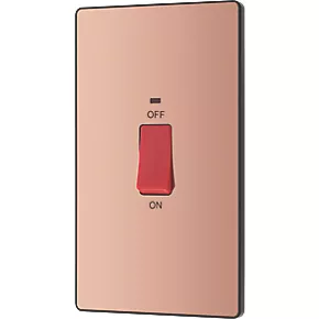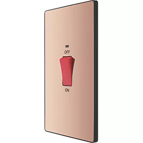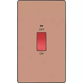 British General Evolve 45A 1-Gang 2-Pole Cooker Switch Copper with LED with Black Inserts