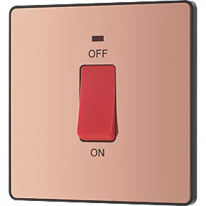 British General Evolve 45A 1-Gang 2-Pole Cooker Switch Copper with LED with Black Inserts