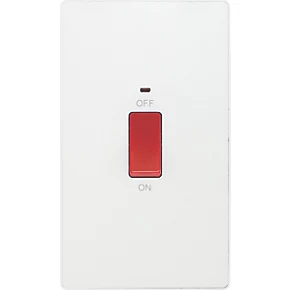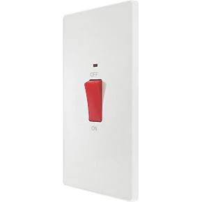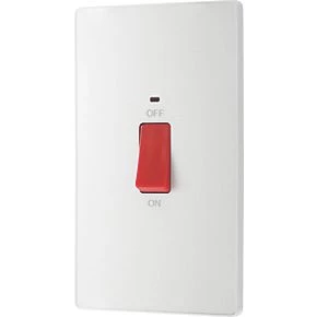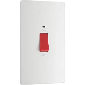 British General Evolve 45A 1-Gang 2-Pole Cooker Switch Pearlescent White with LED with White Inserts