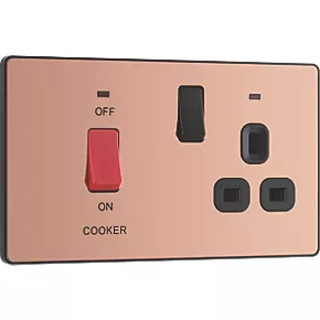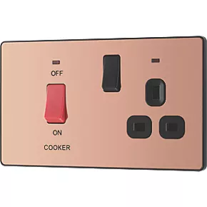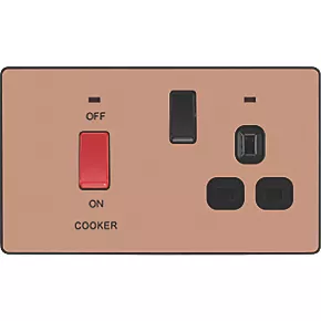 British General Evolve 45A 2-Gang 2-Pole Cooker Switch & 13A DP Switched Socket Copper with LED with Black Inserts