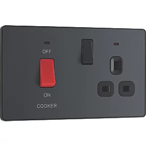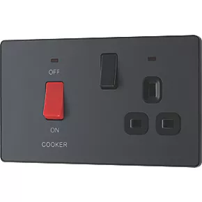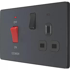 British General Evolve 45A 2-Gang 2-Pole Cooker Switch & 13A DP Switched Socket Grey with LED with Black Inserts