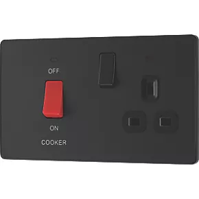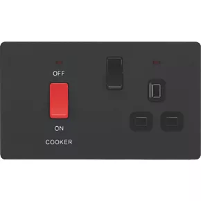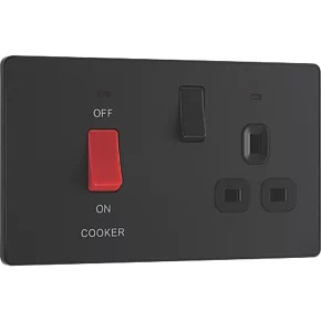 British General Evolve 45A 2-Gang 2-Pole Cooker Switch & 13A DP Switched Socket Matt Black with LED with Black Inserts