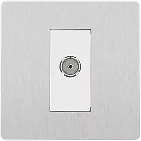 British General Evolve Coaxial TV / FM Socket Brushed Steel with White Inserts