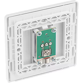 This Evolve single coaxial socket from British General can be used for TV or FM aerial connections. Low profile screwless flat plate clips on and off making it ideal for modern interiors and redecorating. Easy to install with fixing screws and instructions supplied.