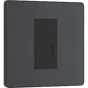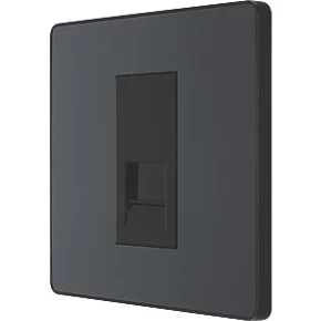 Matt grey master telephone socket with easy-to-install, screw terminal connection. Feeds extension sockets, if required. For use where telephone line enters property. Connect router here for optimum broadband performance. Features low profile, screwless flat plate that clips on and off, making it ideal for modern interiors.