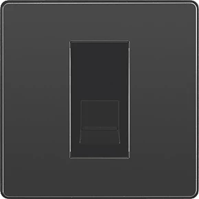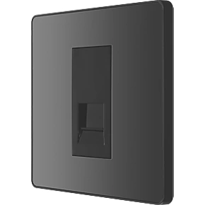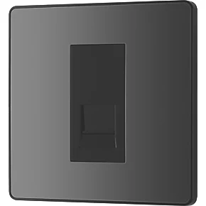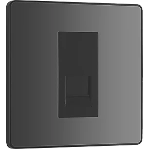 Black chrome secondary telephone socket with easy-to-install, screw terminal connection. For use as additional telephone point, feeding from master telephone socket. Features low profile, screwless flat plate that clips on and off, making it ideal for modern interiors.