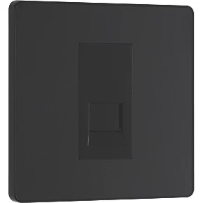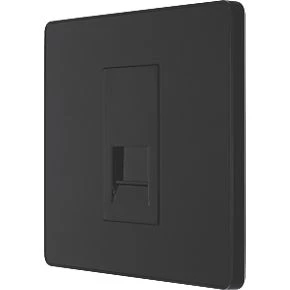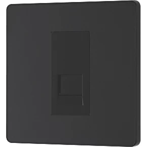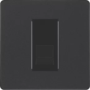 Matt black secondary telephone socket with easy-to-install, screw terminal connection. For use as additional telephone point, feeding from master telephone socket. Features low profile, screwless flat plate that clips on and off, making it ideal for modern interiors.