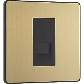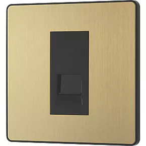 Satin brass secondary telephone socket with easy-to-install, screw terminal connection. For use as additional telephone point, feeding from master telephone socket. Features low profile, screwless flat plate that clips on and off, making it ideal for modern interiors.