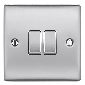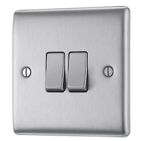 British General Nexus Metal 10AX 2-Gang 2-Way Light Switch Brushed Steel