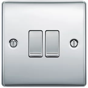 Be the first to review “British General Nexus Metal 10AX 2-Gang 2-Way Light Switch Polished Chrome” Cancel reply