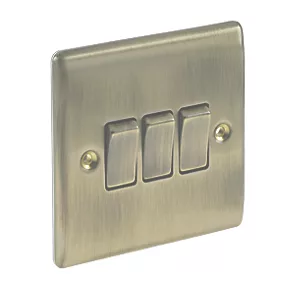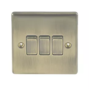 British General Nexus Metal 10AX 3-Gang 2-Way Light Switch Antique Brass
