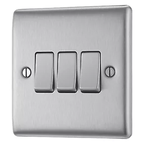 British General Nexus Metal 10AX 3-Gang 2-Way Light Switch Brushed Steel