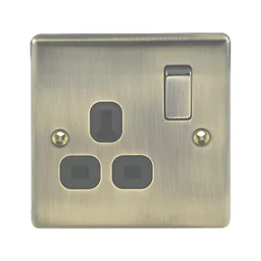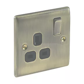 British General Nexus Metal 13A 1-Gang DP Switched Plug Socket Antique Brass with Black Inserts