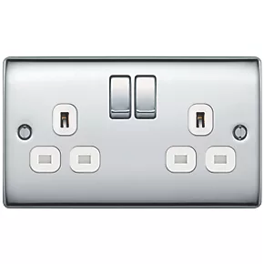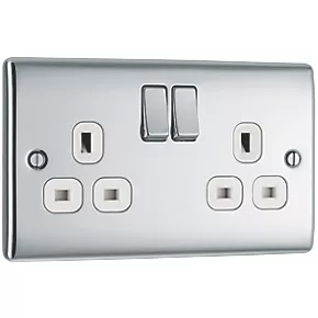 British General Nexus Metal 13A 2-Gang DP Switched Plug Socket Polished Chrome with White Inserts