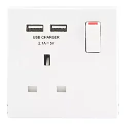 British General 900 Series 13A 1-Gang SP Switched Socket + 2.1A 2-Outlet Type A USB Charger White