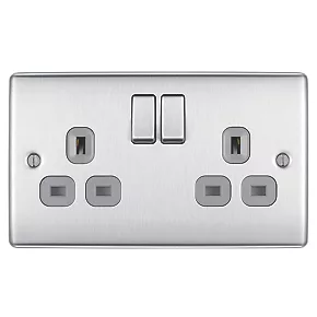 Be the first to review “British General Nexus Metal 13A 2-Gang SP Switched Plug Socket Brushed Steel with Graphite Inserts” Cancel reply