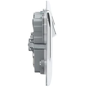 Decorative finish switched socket with 2 USB charging ports. Ideal for charging iPads, iPhones, tablets, mobile phones, cameras, MP3s and many more devices. Sleek, slim profile with soft rounded corners. Features angled in-line terminals and includes backed-out captive screws for easy installation.