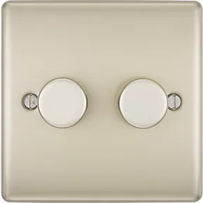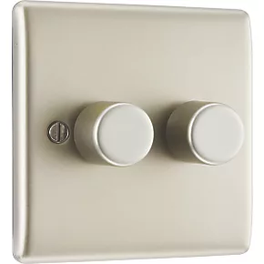 British General Nexus Metal 2-Gang 2-Way LED Trailing Edge Double Push Dimmer Switch with Rotary Control Pearl Nickel with Colour-Matched Inserts