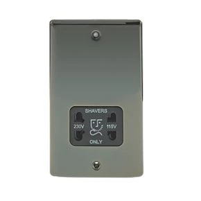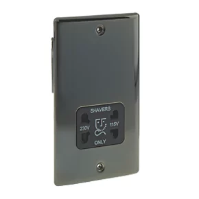 Be the first to review “British General Nexus Metal 2-Gang Dual Voltage Shaver Socket 115 / 240V Black Nickel with Black Inserts” Cancel reply