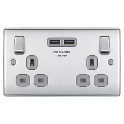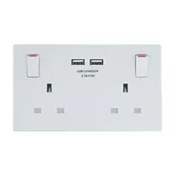 British General 900 Series 13A 2-Gang SP Switched Socket + 3.1A 2-Outlet Type A USB Charger White