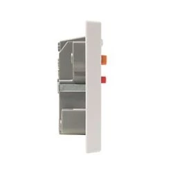 Easy to install, slim profile with rounded edges. Moisture control gasket to prevent tarnishing from new plaster. Captive backed-out terminal screws to prevent screw loss.