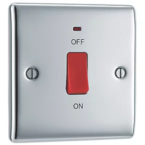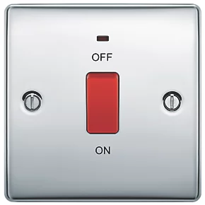 British General Nexus Metal 45A 1-Gang DP Cooker Switch Polished Chrome with LED