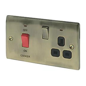British General Nexus Metal 45A 2-Gang DP Cooker Switch & 13A DP Switched Socket Antique Brass with LED with Black Inserts
