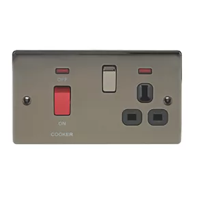 Be the first to review “British General Nexus Metal 45A 2-Gang DP Cooker Switch & 13A DP Switched Socket Black Nickel with LED with Black Inserts” Cancel reply
