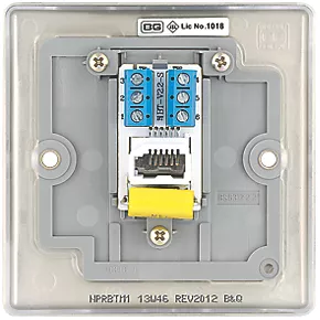 Master telephone socket with easy-to-install, screw terminal connection. Feeds extension sockets, if required. For use where telephone line enters property. Connect router here for optimum broadband performance. Features slim profile with rounded edges and moisture control gasket to prevent tarnishing from new plaster.